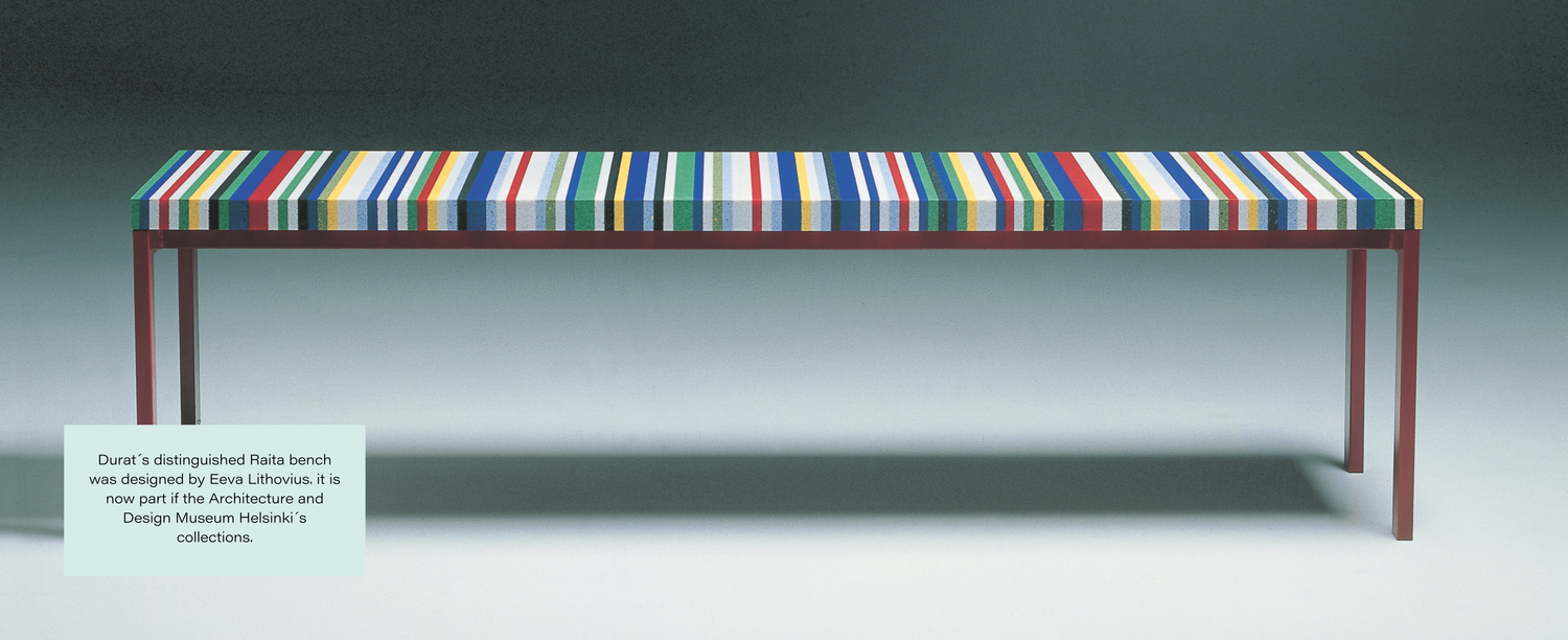Durat's focus on design has succeeded in raising its profile and setting it apart from its competitors. It gained column space in major design magazines such as WallPaper, Elle, Frame and numerous other international publications. The publicity was also noticed by Finnish designers, and many of them also found Durat in their designs.