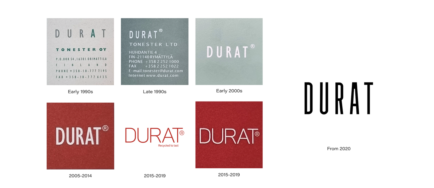 Durat's brand identity has been carefully cultivated over the years. The logo has been updated over time, but it still bears a strong resemblance to the original version. For the first twenty years, graphic designer Sissu Muhujärvi was responsible for developing the logo and visual identity. In 2020, the brand identity was thoroughly reviewed with the aim of clarifying it to reflect the company's current goals and values. In connection with this, responsibility for the project was transferred to graphic designer Päivi Helander.